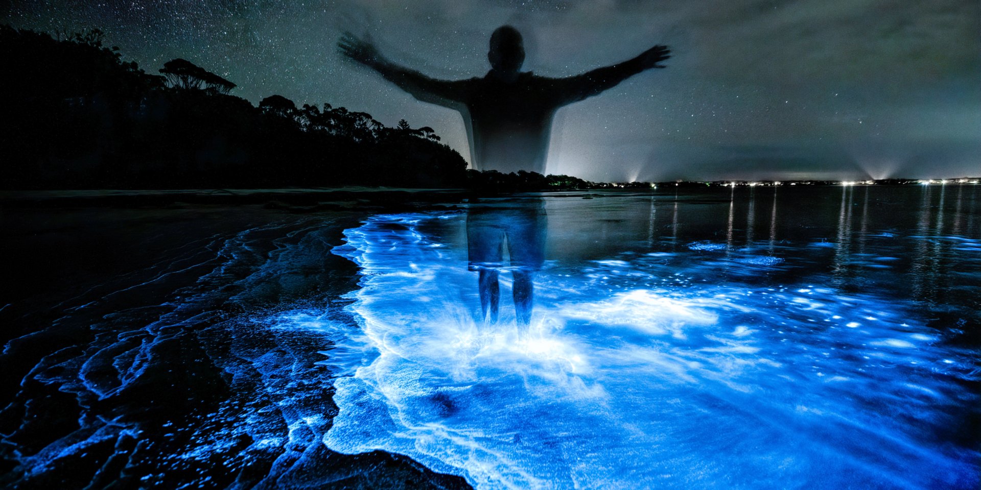 Não é incrível? Esse brilho azul são algas microscópicas! E elas são tão pequenas que milhares cabem em uma única gota de água. As algas emitem essa luz linda à noite e o fenômeno pode ser visto na praia. Incrível, não é mesmo?
